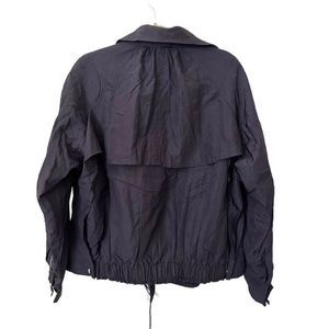 Dark navy blue overlay style jacket. Adjustable drawstrings at waist. Silver hardware. Lined. New without tags - no material tag but is a windbreaker material! Size 4