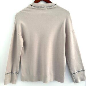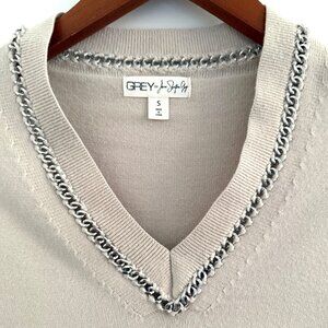 GREY Jason Wu Chain Trim V-Neck Sweater Beige S Minimalist Quiet Luxury Knit