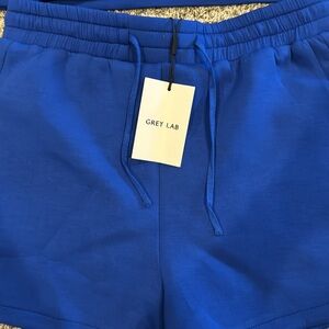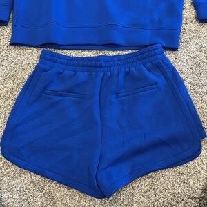 New! Grey lab scuba sweat set. Very luxurious feeling fabric. Bright royal blue, both pieces are size L. Shorts are lined/ have shorts underneath but not quite a spandex tight feeling
