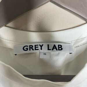 This white blouse by GREY LAB features a round neckline and a smocked detailed middle for a feminine touch. Size XS