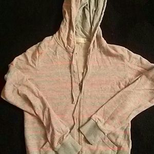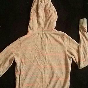 GREY PINKISH ORANGE STRIPPED SWEAT SHIRT HOODIE Zips up the front