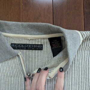 GREY RIBBED KNIT VINTAGE QUARTER ZIP SWEATSHIRT