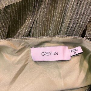 GREYLIN Sage Green Delilah Shoulder Tie Plisse Maxi Dress Sz M