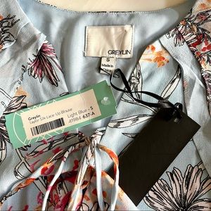 GREYLIN Taylor Silk Lace-Up Blouse Blue Sz S