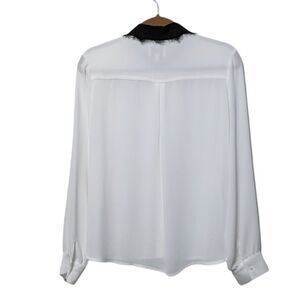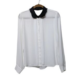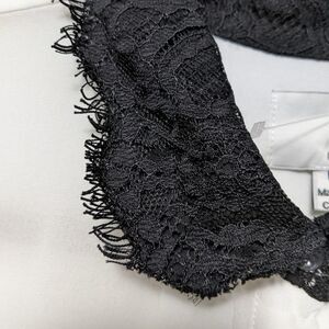 GREYLIN Sheer White Pleated Lace Collar Blouse M