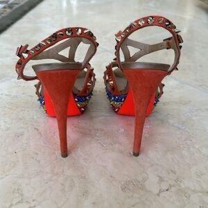GREYMER leather swarovski crystals platform high shoes color orange blue yellow size 36