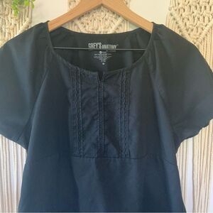 GREY’S ANATOMY 2 Pocket Embroidered Raglan Scrub Top Black Medium