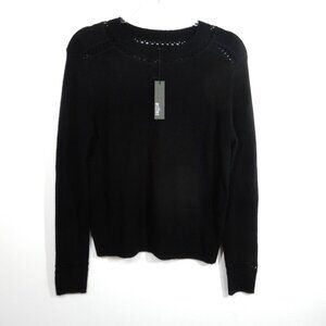 GRIFFEN Open Stitch Trim Wool & Cashmere Crewneck Sweater Size M Black NEW