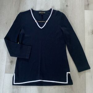 GRIFFITH GRAY ST. JOHN navy blue top gold chain size S nautical casual career