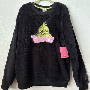 GRINCH Black Terry Cloth Large Holiday Cold Weather Sweater Brand New