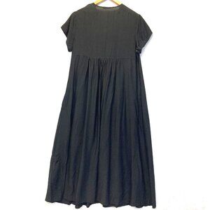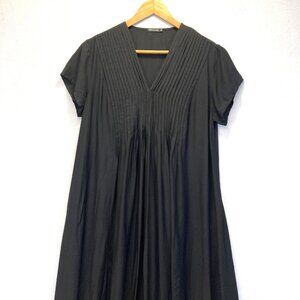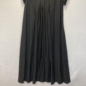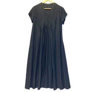 GRIZAS Silk Bamboo Blend Pleated Maxi Dress Womens Medium Black V-Neck Flowy
