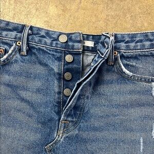 Elevate your casual style with the GRLFRND Distressed Blue Denim Skirt. Featuring a trendy frayed hem and classic blue hue, this skirt is perfect for any casual outing.