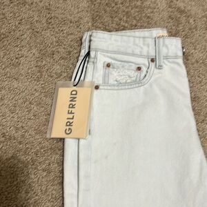 GRLFRND 24 Karolina High Rise Straight Leg Crop Jeans Light Denim Distressed New