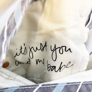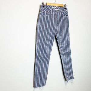 GRLFRND 27 Jeans Karolina High Rise Crop Taffy Blue Striped Raw Hem Button Fly
