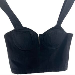 GRLFRND Ariel Black Denim Bralette Top, 100% cotton, style name Ariel, adjustable straps, in good condition. Bust measurement of 38”