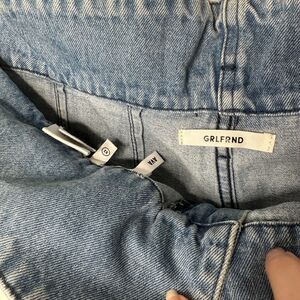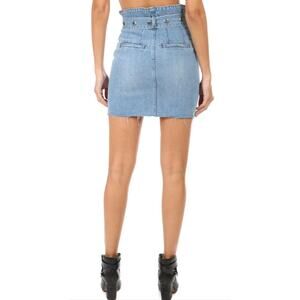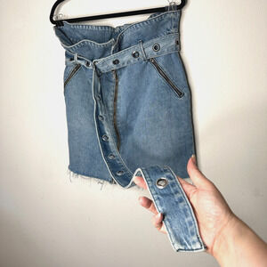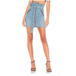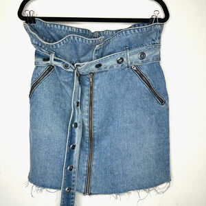 GRLFRND Ava Medium Blue Wash Zip Denim Skirt Grommet Belt Frayed Hem Paperbag 32
