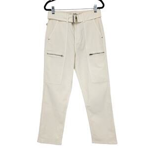 GRLFRND Belted Cotton Denim High Rise Zipper Pocket Skylar Pants In Bone Size 26