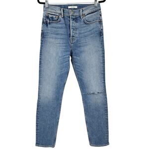 GRLFRND Button Fly Skinny Leg Distressed High Rise Karolina in Not Me Size 27