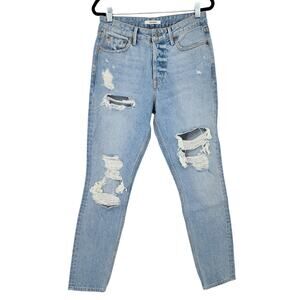 GRLFRND Button Fly Skinny Leg High Rise Distressed Karolina in Live On Size 27