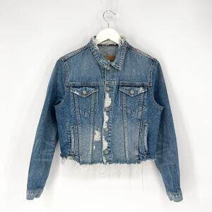 GRLFRND Cara Cropped Denim Jacket Women’s Size Medium Mary Jane Distressed