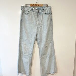 GRLFRND's fashion industry-favorite Carla wide-leg jeans are back in the label's distressed Countdown light wash. Belt loops. Button fly. Five pocket styling. Raw-edge frayed hems. Distressed throughout with subtle rips.