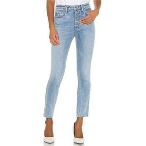 GRLFRND Denim Karolina Button Fly High Rise Skinny Jeans in 'You Made It' Colorway (Med Light Wash) | 29 | EUC | MSRP $228 | Measurements Laying Flat and Unstretched: Waist 14.5" | Rise 11.5" | Inseam 27" | Please refer to the photos for the condition.