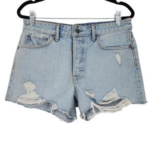 GRLFRND Distressed Helena High Rise Light Wash Denim Short in Kiki Size 27