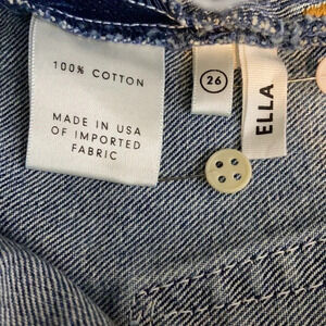 GRLFRND Ella Denim Wrap Skirt in Sugah Daddy in a waist size 26. New with tags. Raw cut edges, high rise on waist, distressing throughout, reworked, 2 front pockets, 1 back pocket, dark wash. Asymmetrical hem, wrap with tie closure and inner button at waistline. Approximate measurements: 13 1/2" waist, 15" length. Model pics are to show fit only. Please refer to actual product photo for color reference.