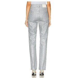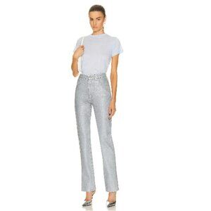 These statement-making GRLFRND Harlow coated jeans feature a sleek high-rise fit and edgy bootcut silhouette in a shimmering silver finish. Perfect for elevating casual looks or adding bold flair to any outfit. A must-have for denim lovers who want standout style. NOTE: small dirt streak on back of one leg, super light and should come out upon wash.