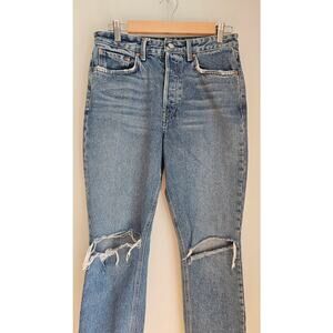 GRLFRND JEANS The Karolina High Rise Distressed Straight Crop Denim Jeans Sz 28