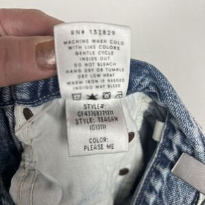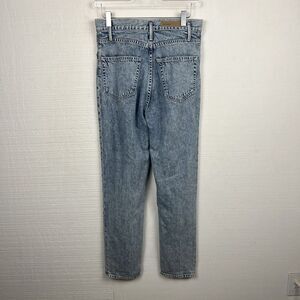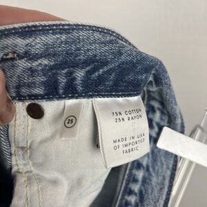 Elevate your denim collection with these GRLFRND jeans. The high rise waist and straight leg style provide a flattering silhouette, while the pleated accents add a touch of sophistication. The medium wash and light fading give a vintage feel, perfect for any casual occasion. These jeans feature a zip and button closure and are made of a blend of cotton and rayon for both comfort and durability. Available in size 26 with a waist size of 28 inches.