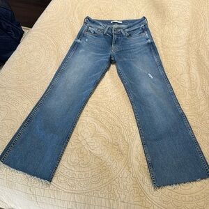 EUC GRLFRND Low-Rise Joan Cropped Flare raw hem jeans