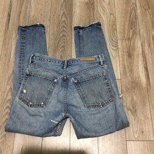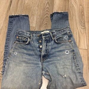 GRLFRND Karolina high rise jeans. Button front. Please note that these have been distressed more than how they originally were. Reinforced patches and stitching were also added so they don’t rip more. See photos.