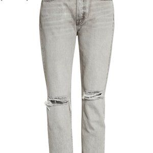These premium jeans bestow catwalk confidence with a high-waist silhouette that flatters the rear before tapering to the ankle. Ripped knees and a faded wash provide that coveted vintage look.