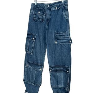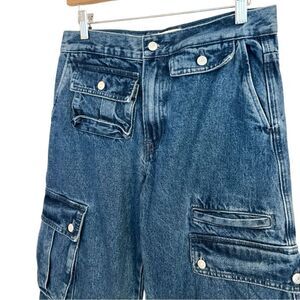 GRLFRND Lara Cargo Wide Leg Jeans in Big Sky Medium Wash, Size 26