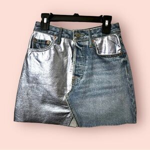 GRLFRND Milla Metallic Leather Panel Denim Mini Skirt size 23