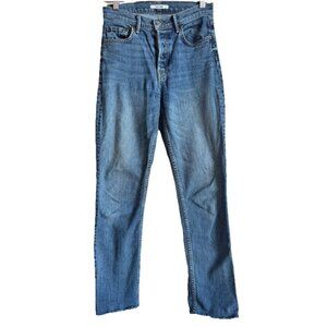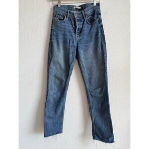 GRLFRND Natalia High Rise Ankle Cropped Blue Denim Raw Hem Size 27 Ma Belle Amie
