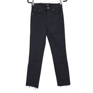 GRLFRND Reed High Rise Slim Leg Cropped Raw Hem Jeans In Black Magic Size 25