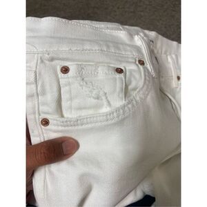 GRLFRND The Reed High Rise Slim Leg Cropped Raw Cut Hem White/Bronco Jeans 27 EUC, 3432PM Each pair of GRLFRND's jeans is made from premium denim in an exacting fit that's always flattering. Blended with a hint of stretch, this 'Reed' style is cut with slim legs and has a high-rise waist and frayed, cropped hems. Wear them with simple wedge sandals or ankle boots. - 5-pocketm, slim leg, mid/high rise (approximately 10") - Raw cut hem - Mid-weight stretchy fabric - Concealed zipper + button - GRLFRND leather label patch on the back at the waist - Composition 97% cotton - 3% polyurethane - Machine wash - Color Bronco white - Made in Los Angeles 12" at the knee and 12" at the leg opening. The Reed Bronco GRLFRND white jeans fit true to size
