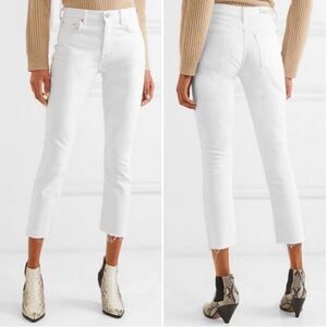 GRLFRND Reed Slim Leg Raw Hem Cropped Jean in Bronco (White) Size 26