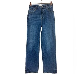 The GRLFRND Brooklyn jeans are crafted from 100% cotton rigid denim. These high-rise jeans feature a button fly, a 5-pocket design, light whiskering and fading detail, and a wide straight leg that is fitted in the waist and loose in the thigh.
