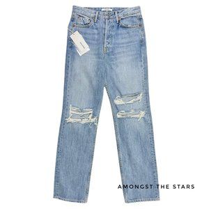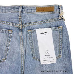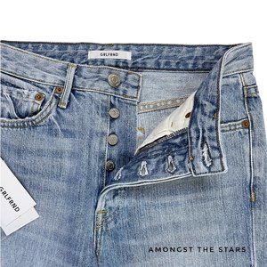 Brand new with tags, Women's size 26. Retails for $248! These GRLFRND The Mica Distressed High Waisted Straight Leg Blue Jeans are classic and timeless! These super high rise jeans are distressed at the knees with a straight, relaxed leg. Love the vintage, retro vibes of the 90s and y2k. Hidden button fly. Comes in the color Wish You Would, a light blue wash. This style is discontinued and sold out. It's rare to find these new with tags, your chance to own these now!