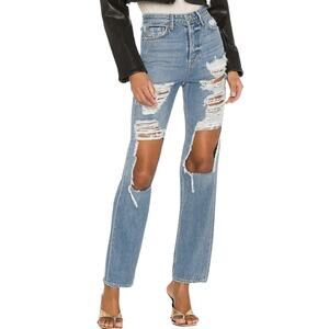 GRLFRND The Mica destroyed straight leg super high rise jeans in Fly Away 25 NEW