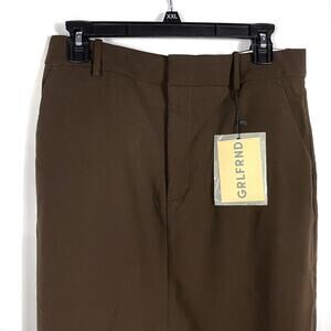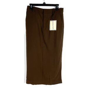 GRLFRND Trouser Skirt Midi Brown Pockets Side Slit Zip High Rise Sz S
