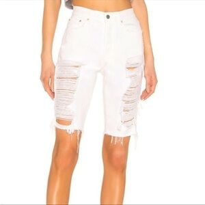 GRLFRND • White Destructed Beverly Bermuda Shorts
