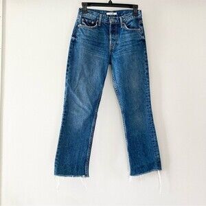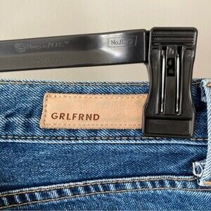 GRLFRND medium indigo blue wash denim Tatum cropped boot cut jeans 25