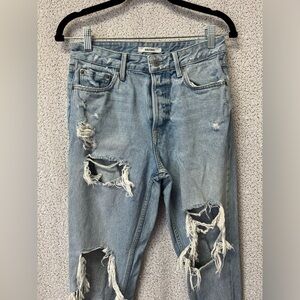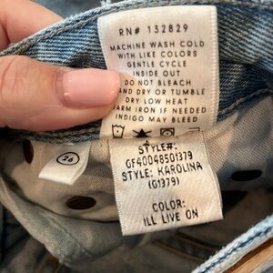 Cut in their I'll Live On denim, GRLFRND's Karolina high-rise jeans feature slashed detailing and distressing for an authentic lived-in look. Belt loops. Zip fly and button closure. Five pocket styling.