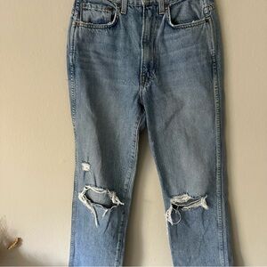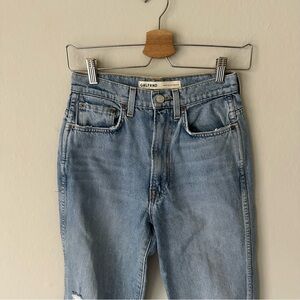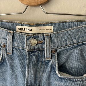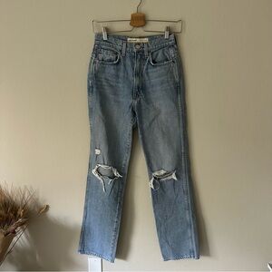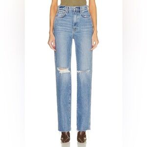 GRLFRND Sara Super High Rise Slim Straight Distresses Size 25 Red Rock