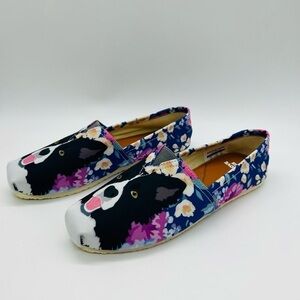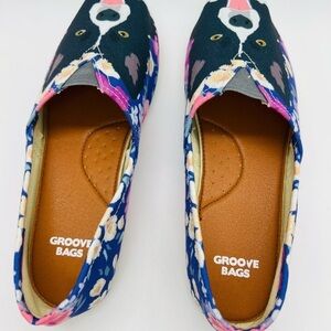 GROVE BAGS WOMENS FLAT SLIP ON SHOES WITH DOG/FLORAL DESIGN SIZE 7 NWOT