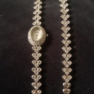 Beautiful Vintage GRUEN watch & braclet set. Lots of trio diamond band.